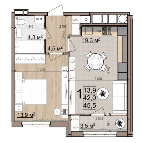 Квартира 433, 1-комнатная в ЖК "Еврокласс-5" от компании "Зеленый сад". Район — Кальное, ул. Быстрецкая. Купите квартиру в новостройке в Рязани: 45.5 кв.м., 24 этаж. Кухня — 19.3 кв.м. Ипотека, Trade-In. Подробности на нашем сайте