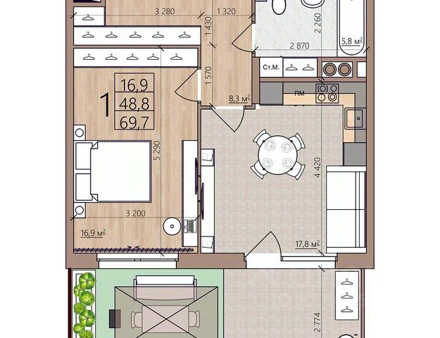 Квартира с собственной террасой! Вы покупаете не только жильё, но и собственный зеленый дворик для барбекю, детского бассейна, качелей, тренажёрного зала, летней оранжереи и так далее - на ваш вкус. Жилой комплекс "Окская стрелка" находится в микрорайоне Борки. Это единственный ЖК в Рязани, расположенный на берегу Оки! Он станет идеальным домом для тех, кто хочет жить в экологически чистом районе с особым микроклиматом, который создают река, лес и луга. Благоустройство, инфраструктура: новые дороги;набережная, песчаный пляж;прогулки на природе;школа, детский сад;игровые площадки;спортивные объекты, в том числе для занятий водными видам спорта;место для рыбалки;магазины;центральная площадь с фонтаном.Описание квартиры: отделка white box (предчистовая, можно сразу клеить обои, укладывать ламинат);готовая электрическая разводка;удобная планировка;высота потолков - 3 м;срок сдачи дома - 3-й квартал 2027 года.Квартира в ЖК "Окская стрелка" подойдёт как молодым людям, ведущим активный образ жизни, так и семейным парам с детьми, ценящим уют. Это жильё нового формата, ваше вложение в красивое будущее. Возможна рассрочка, ипотека под 6% и ниже!