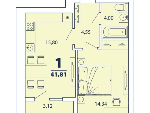 Общая площадь квартиры составляет 34,2 кв. м, из которых 20 кв. м — жилая площадь, а 9 кв. м занимает кухня. Санузел совмещённый. Квартира НЕ угловая, расположена на 11-м этаже. Окна выходят на улицу, что обеспечивает хорошее естественное освещение и шикарный вид их окна.