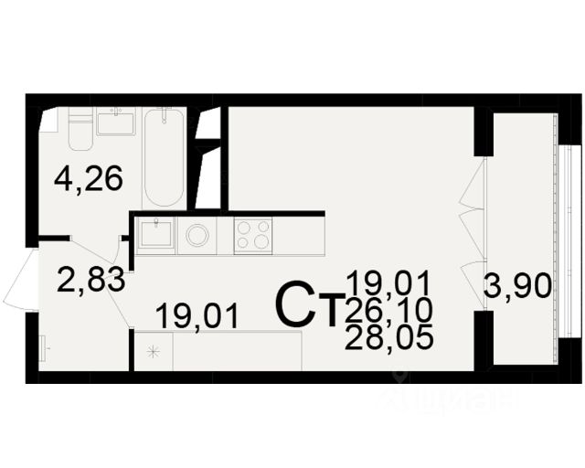 В продаже просторная однокомнатная квартира, с уникальной планировкой!