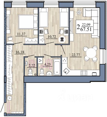 Эта квартира идеально подходит для тех, кто ценит пространство и комфорт.