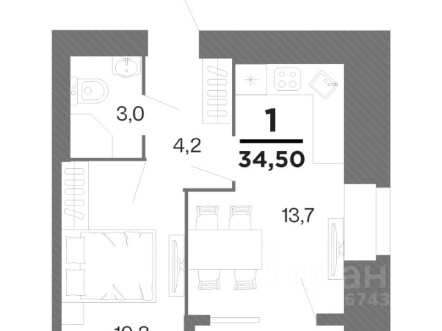 Вместительную кухню-гостиную, которая станет центром домашнего уюта, прекрасно подойдет как для семейных ужинов, так и для встреч с друзьями.