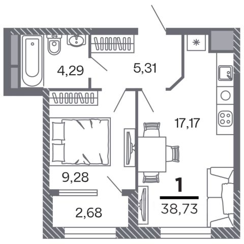 Предлагается к продаже 1 ком смарт квартира в ЖК Еврокласс 4. Общая плащадь 37,2м.