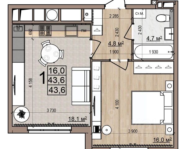 Квартира 157, 1-комнатная в ЖК "Еврокласс-5" от компании "Зеленый сад - наш дом". Район — Кальное, ул. Быстрецкая. Купите квартиру в новостройке в Рязани: 35.4 кв.м., 18 этаж. Кухня — 16.7 кв.м. Ипотека, Trade-In. Подробности на нашем сайте