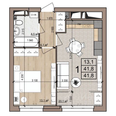 Квартира 14, 1-комнатная в ЖК Полярная звезда от компании "Зеленый сад". Московский район, развитая инфраструктура. Купить квартиру в новостройке в Рязани: 41.5 кв.м., 3 этаж. Кухня — 19 кв.м. Ипотека, Trade-In. Подробности на нашем сайте