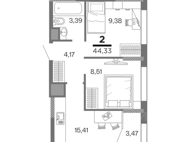 Площадь квартиры указана вместе с лоджией.