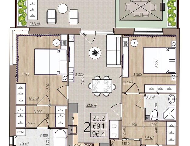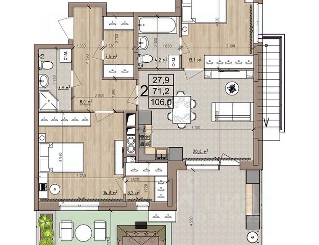 Квартира с собственной террасой! Вы покупаете не только жильё, но и собственный зеленый дворик для барбекю, детского бассейна, качелей, тренажёрного зала, летней оранжереи и так далее - на ваш вкус. Жилой комплекс "Окская стрелка" находится в микрорайоне Борки. Это единственный ЖК в Рязани, расположенный на берегу Оки! Он станет идеальным домом для тех, кто хочет жить в экологически чистом районе с особым микроклиматом, который создают река, лес и луга. Благоустройство, инфраструктура: новые дороги;набережная, песчаный пляж;прогулки на природе;школа, детский сад;игровые площадки;спортивные объекты, в том числе для занятий водными видам спорта;место для рыбалки;магазины;центральная площадь с фонтаном.Описание квартиры: отделка white box (предчистовая, можно сразу клеить обои, укладывать ламинат);готовая электрическая разводка;удобная планировка;высота потолков - 3 м;срок сдачи дома - 3-й квартал 2027 года.Квартира в ЖК "Окская стрелка" подойдёт как молодым людям, ведущим активный образ жизни, так и семейным парам с детьми, ценящим уют. Это жильё нового формата, ваше вложение в красивое будущее. Возможна рассрочка, ипотека под 6% и ниже!