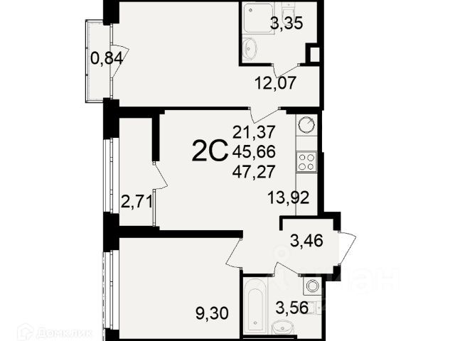 Общая площадь 65,4 кв.м (с учетом лоджии).