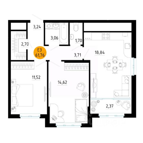 • ✓ В базе Циан 56 2-комнатных квартир на 11 этаже в районе Железнодорожный в городе Рязань