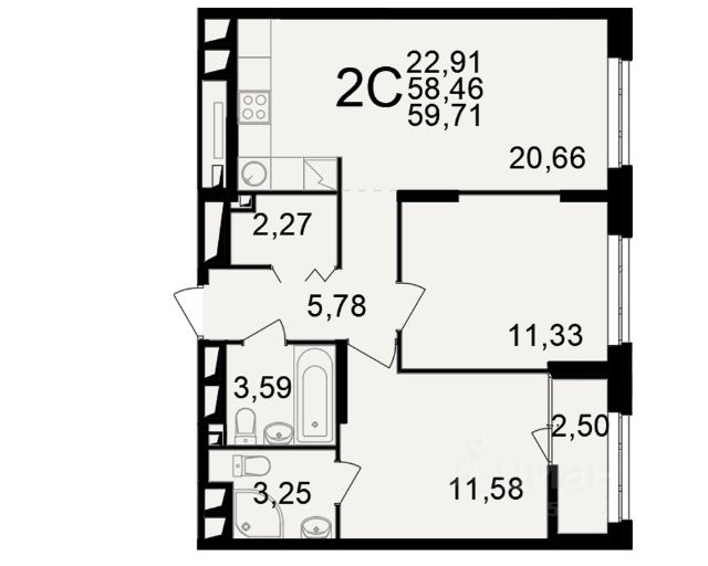 • Изолированные комнаты 20 м и 19 м с удобной планировкой , обеспечивающая комфорт и приватность.
