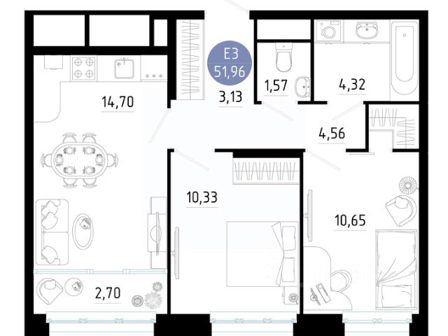 • Санузел: раздельный, что добавляет удобства в повседневной жизни.