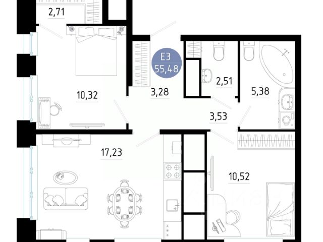 Эта квартира идеально подойдет как для семейной жизни, так и для тех, кто ценит комфорт и уют.