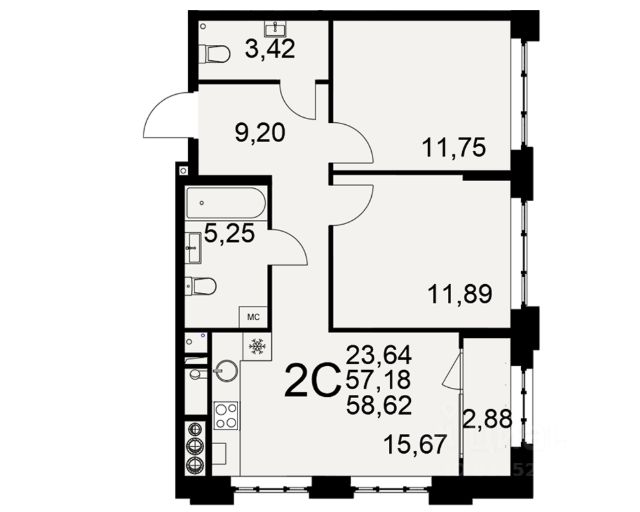 - электропроводка на медном кабеле 220 V с установкой электрического щита на лестничной площадке и распределительного щита в квартире;- штукатурка кирпичных стен, кроме стен лоджий, откосов дверных и оконных проемов, ниш прохождения стояков водопровода и канализации. Участки монолитных конструкций не штукатурятся;- стяжка пола;- шумоизоляция пола;- индивидуальная (поквартирная) система отопления и горячего водоснабжения (газовый котел, газовый счетчик, элементы дымоходов, шаровые краны, разводка полимерной трубой, приборы отопления);- смонтированы внутриквартирные стояки холодного водоснабжения (с установкой приборов учета) и водоотведения (канализация). Разводка труб водоснабжения и водоотведения (канализация) до сантехнических приборов не производится, сантехнические приборы: унитаз, ванна, мойка, раковина и полотенцесушитель не устанавливаются;- смонтирована система "теплый пол" в санузле, ванной комнате, в коридоре у входной двери,- установлен вентиляционный приточный клапан (ВПК);- оконные проемы без выхода на лоджию остеклены ПВХ-профилем с отливом без подоконника; оконные проемы с выходом на лоджию остеклены ПВХ-профилем без отлива, лоджии остеклены ПВХ профилем без установки подоконника, москитные сетки не предусмотрены, места запенивания монтажной пеной и укрывания гидроизоляционным герметиком не штукатурятся; - установлена входная металлическая дверь;- установлен домофон.