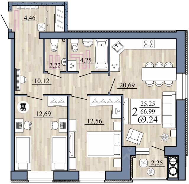 2-х комнатная квартира в жилом комплексе СТРИЖИ СРОК СДАЧИ ДОМА - 2 квартал 2027 года. Классическая планировка! Практичная двухкомнатная квартира площадью 58.97 кв. м — разумный выбор для уютной жизни! Отдельная кухня 10.95 кв. м сохранит домашние традиции готовки. Две светлые комнаты (12.48 и 10.83 кв. м) подойдут для спальни и детской. Совмещённый санузел — функциональное решение, а просторная лоджия 5.48 кв. м с выходом из кухни станет оазисом для отдыха. Окна на две стороны подарят радость солнечных лучей! Комфорт, проверенный временем! В наших квартирах вам не захочется что-то менять или переделывать. Мы позаботились о том, чтобы все было на высшем уровне, а ремонт не отнял много времени и средств. Вот основные преимущества: Отделка "White Box Premium": ЖК Стрижи представляет собой первый в Рязанской области жилой комплекс, где во всём комплексе реализована премиальная предчистовая отделка White Box Premium. Все квартиры передаются с идеально подготовленными поверхностями, готовыми к финишной отделке: стены выровнены, оштукатурены белоснежным цветом и идеально подходят для поклейки обоев любой плотности (кроме самых тонких). В санузлах и на лоджиях применена суперстойкая цементная штукатурка! Также в комплект входит надежная металлическая дверь. Окна премиум-класса: Современные окна обеспечивают отличную тепло- и звукоизоляцию, создавая комфортные условия внутри квартиры и защищая от внешних шумов. Индивидуальное отопление: Каждая квартира нашего дома оборудована индивидуальным газовым котлом. Вы можете создать комфортную температуру в любое время года, независимо от погодных условий. Приточная вентиляция в каждой комнате: Обеспечивает свежий воздух и поддерживает оптимальный микроклимат, что особенно важно для вашего здоровья и благополучия. Теплые полы: Во входной зоне коридора, ванных комнатах и санузлах установлены тёплые полы. Система очистки воды: Гарантирует вам доступ к чистой и безопасной воде, что сделает повседневную жизнь более комфортной и здоровой. Ландшафтный дизайн: Эстетически продуманные территории с благоустроенными дорожками и украшающими насаждениями. Зеленые зоны для отдыха и прогулок, где каждый сможет насладиться свежим воздухом. Игровые и спортивные зоны: Оригинальные площадки для детей и современные оборудованные места для занятий спортом. Оборудование Work-out: Специально подготовленные зоны для активных тренировок на открытом воздухе и спокойного отдыха. Грамотное зонирование: Часть двора закрыта для автотранспорта, что обеспечивает безопасность и комфорт. Игровые и спортивные площадки удобно расположены в непосредственной близости к жилым помещениям. Комплекс предлагает многоуровневую систему безопасности, включая современные решения, такие как распознавание лиц, что создает дополнительный уровень уверенности для жителей. Развитая инфраструктура делает жизнь в СТРИЖАХ ещё более удобной: в пешей доступности находятся школы, детские сады, спортивные комплексы с бассейнами, поликлиники, магазины