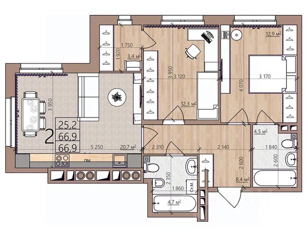 Квартира с собственной террасой! Вы покупаете не только жильё, но и собственный зеленый дворик для барбекю, детского бассейна, качелей, тренажёрного зала, летней оранжереи и так далее - на ваш вкус. Жилой комплекс "Окская стрелка" находится в микрорайоне Борки. Это единственный ЖК в Рязани, расположенный на берегу Оки! Он станет идеальным домом для тех, кто хочет жить в экологически чистом районе с особым микроклиматом, который создают река, лес и луга. Благоустройство, инфраструктура: новые дороги;набережная, песчаный пляж;прогулки на природе;школа, детский сад;игровые площадки;спортивные объекты, в том числе для занятий водными видам спорта;место для рыбалки;магазины;центральная площадь с фонтаном.Описание квартиры: отделка white box (предчистовая, можно сразу клеить обои, укладывать ламинат);готовая электрическая разводка;удобная планировка;высота потолков - 3 м;срок сдачи дома - 3-й квартал 2027 года.Квартира в ЖК "Окская стрелка" подойдёт как молодым людям, ведущим активный образ жизни, так и семейным парам с детьми, ценящим уют. Это жильё нового формата, ваше вложение в красивое будущее. Возможна рассрочка, ипотека под 6% и ниже!