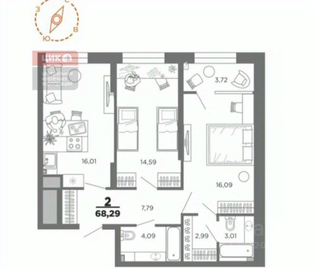 В квартире выполнен WHITE BOX. Удачная планировка.