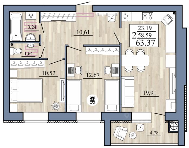 2-х комнатная квартира в жилом комплексе СТРИЖИ СРОК СДАЧИ ДОМА - 2 квартал 2026 года. Уютная двухкомнатная квартира европланировки общей площадью 63,37 кв.м. Это идеальное решение для комфортной жизни! Квартира включает в себя: Вместительную кухню-гостиную, которая станет центром домашнего уюта, прекрасно подойдет как для семейных ужинов, так и для встреч с друзьями. Две комфортабельные спальни, обеспечивающие уединение и комфорт для всех членов семьи. Также в квартире предусмотрены: Раздельный санузел, что добавляет дополнительное удобство в повседневной жизни. Просторный коридор, где предусмотрено место для шкафов и хранения необходимых вещей. Эта квартира идеально подходит для тех, кто ценит пространство и комфорт. В наших квартирах вам не захочется что-то менять или переделывать. Мы позаботились о том, чтобы все было на высшем уровне, а ремонт не отнял много времени и средств. Вот основные преимущества: Отделка "White Box Premium": ЖК Стрижи представляет собой первый в Рязанской области жилой комплекс, где во всём комплексе реализована премиальная предчистовая отделка White Box Premium. Все квартиры передаются с идеально подготовленными поверхностями, готовыми к финишной отделке: стены выровнены, оштукатурены белоснежным цветом и идеально подходят для поклейки обоев любой плотности (кроме самых тонких). В санузлах и на лоджиях применена суперстойкая цементная штукатурка! Также в комплект входит надежная металлическая дверь. Окна премиум-класса: Современные окна обеспечивают отличную тепло- и звукоизоляцию, создавая комфортные условия внутри квартиры и защищая от внешних шумов. Индивидуальное отопление: Каждая квартира нашего дома оборудована индивидуальным газовым котлом. Вы можете создать комфортную температуру в любое время года, независимо от погодных условий. Приточная вентиляция в каждой комнате: Обеспечивает свежий воздух и поддерживает оптимальный микроклимат, что особенно важно для вашего здоровья и благополучия. Теплые полы: Во входной зоне коридора, ванных комнатах и санузлах установлены тёплые полы. Система очистки воды: Гарантирует вам доступ к чистой и безопасной воде, что сделает повседневную жизнь более комфортной и здоровой. Выбирая наши квартиры, вы получаете пространство, в котором все продумано до мелочей для вашего комфорта и удобства! ЖК СТРИЖИ - это современный десятиэтажный кирпичный дом, который станет настоящим украшением вашего района. Архитектурное оформление в японском стиле создает уникальную атмосферу гармонии и уюта, идеально сочетающуюся с окружающей природой. Жилой комплекс СТРИЖИ расположен в экологически чистом и динамично развивающемся районе города Рыбное. Здесь предусмотрено всё необходимое для комфортной жизни: Ландшафтный дизайн: Эстетически продуманные территории с благоустроенными дорожками и украшающими насаждениями. Зеленые зоны для отдыха и прогулок, где каждый сможет насладиться свежим воздухом. Игровые и спортивные зоны: Оригинальные площадки для дете Продам 2-комнатную квартиру первичка в Рыбном.