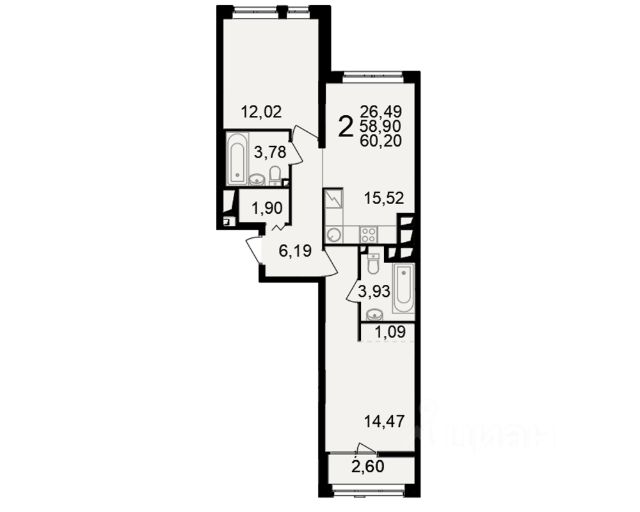 - электропроводка на медном кабеле 220 V с установкой электрического щита на лестничной площадке и распределительного щита в квартире;- штукатурка кирпичных стен, кроме стен лоджий, откосов дверных и оконных проемов, ниш прохождения стояков водопровода и канализации. Участки монолитных конструкций не штукатурятся;- стяжка пола;- шумоизоляция пола;- система отопления и горячего водоснабжения от крышной котельной с установкой прибора учета расхода тепла;- установлены приборы (радиаторы)отопления;- установлена силовая электрическая розетка для самостоятельной установки Участником электрической плиты;- смонтированы внутриквартирные стояки холодного, горячего водоснабжения и водоотведения (канализация) с установкой приборов учета. Разводка труб водоснабжения и водоотведения (канализация) до сантехнических приборов не производится, сантехнические приборы: унитаз, ванна, мойка, раковина, полотенцесушитель- не устанавливаются;- оконные проемы без выхода на лоджии остеклены ПВХ-профилем с отливом без подоконников; оконные проемы с выходом на лоджии остеклены ПВХ-профилем, без отлива без подоконника; лоджии остеклены, москитные сетки не предусмотрены, места запенивания монтажной пеной и укрывания гидроизоляционным герметиком не штукатурятся;- установлена входная металлическая дверь;- установлен домофон, обеспечен доступ для подключения к телевизионному вещанию, интернету и телефонной линии. 2-комнатная квартира на улице Чкалова в городе Рязань.