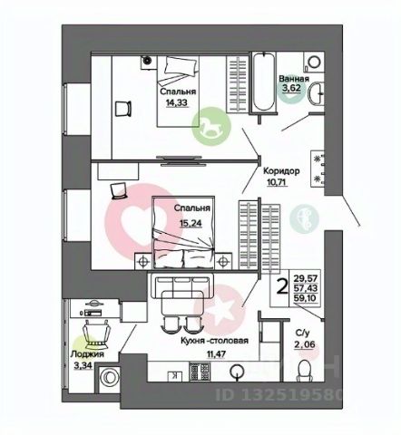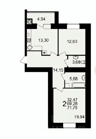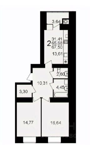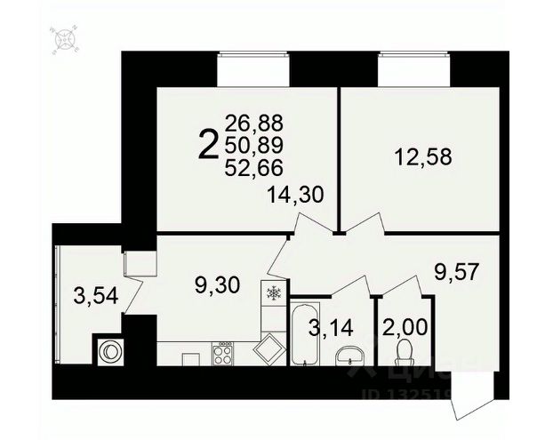 Арт. 126913018 Продается 2-комнатная квартира на улице Княжье Поле в городе Рязань.