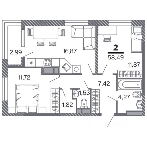 Продаётся 2-комнатная квартира в строящемся доме (Корпус 1), срок сдачи: IV-кв. 2028, общей площадью 55.45 кв.м., на 9 этаже. Новый жилой комплекс "по ул.Быстрецкая" от застройщика "Северная Компания" расположен по адресу Россия, Рязань, Быстрецкая улица.