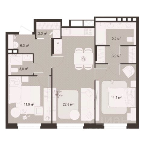 санузлов покрыты гидроизоляционным материалом, трубы выведены. Индивидуальный