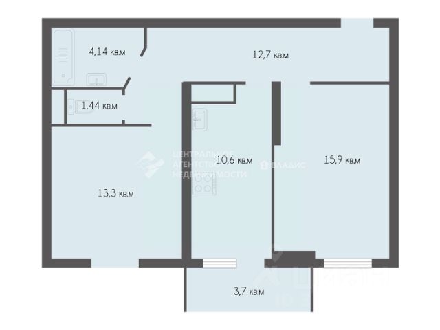 Общая площадь квартиры — 58,3 м², жилая площадь — 29,18 м². Две просторные, изолированные комнаты, площадь которых 15,9 и 13,28 м², раздельный санузел, панорамный вид из окна на город .