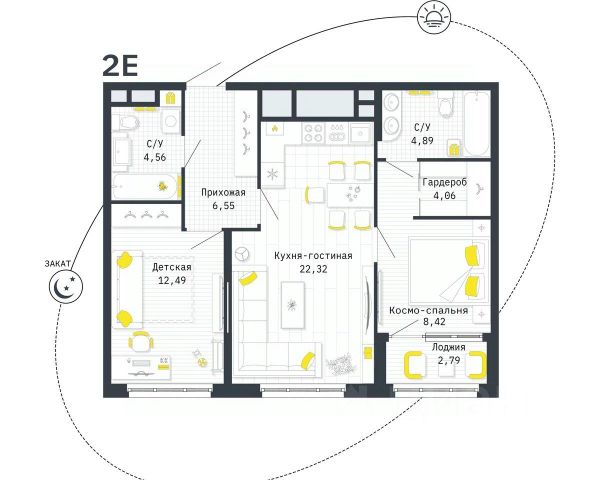 2-комнатная квартира в новом доме комфорт-класса в семейную ипотеку под 4,6%. Целое созвездие преимуществ в вашем будущем доме: Богатая городская среда, территория с контролем доступа, своя парковка под шлагбаумом, современный мультисценарный двор, авторские входные группы с лобби, лапомойкой и колясочными, детская игровая комната на 1 этаже, индивидуальное отопление и качественная отделка, готовая к финальному декорированию. Выбирайте одно из 12 планировочных решений в ЖК Космос и открывайте для себя космический комфорт.