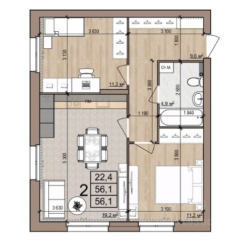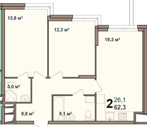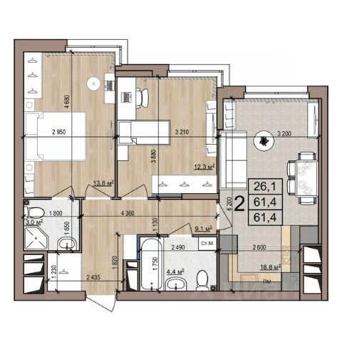 Квартира 204, 2-комнатная в ЖК Полярная звезда от компании "Зеленый сад". Московский район, развитая инфраструктура. Купить квартиру в новостройке в Рязани: 61.4 кв.м., 3 этаж. Кухня — 18.8 кв.м. Ипотека, Trade-In. Подробности на нашем сайте