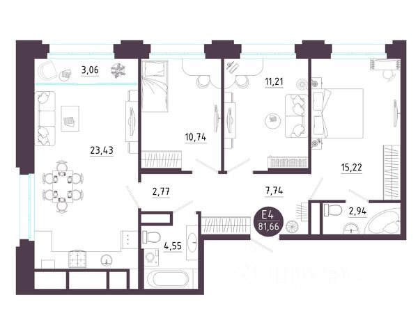 для хранения ваших вещей в квартире предусмотрена гардеробная