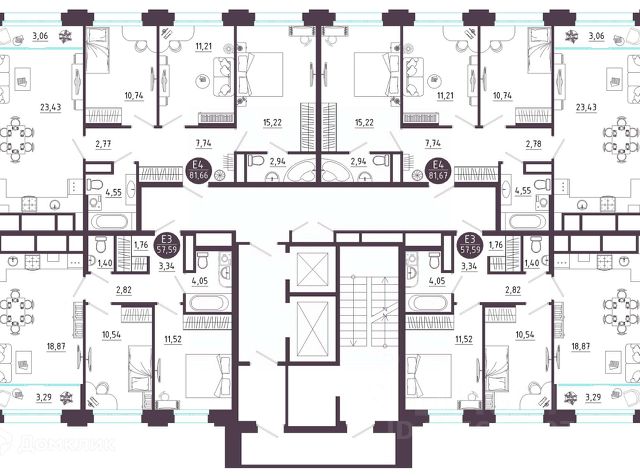не угловая, не торцевая, комнаты на две стороны