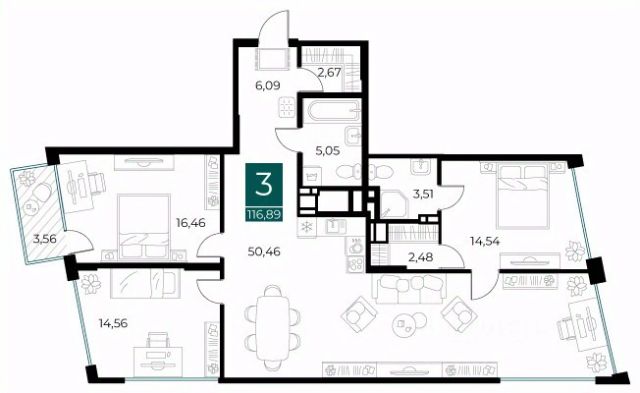 • ✅ Минимальная площадь: 54,9 м²