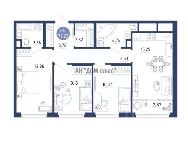 3-х комнатная квартира в жилом комплексе СОКОЛ СРОК СДАЧИ ДОМА - 3 квартал 2027 года. Комфортный формат для семьи Пространство для большой семьи. Комфортная кухня, три комнаты, два санузла, гардеробная. Баланс общих площадей и личного уголка для каждого. Пространство для роста: Три отдельные комнаты разной площади (от 11,40 до 14,05 м²) позволяют с комфортом разместить родителей и детей или обустроить домашний кабинет. Гардеробная (3,57 м²) завершает эту приватную зону. Два санузла — правило большого дома: Наличие гостевого санузла разделяет бытовые сценарии, сохраняя гигиену и интимность семейной зоны. Свет для здоровья и настроения: Расположение окон на две стороны гарантирует, что солнце будет в разных комнатах в разное время. Это создает здоровую, благоприятную световую среду во всей квартире. Премиальная базовая отделка White Box Premium: идеально ровные стены и надежная дверь для вашего дизайна. Окна премиум-класса гарантируют тишину и тепло в квартире круглый год. Индивидуальное отопление - ваш личный комфорт и управление температурой в любое время. Теплые полы установлены во входной зоне, ванных комнатах и санузлах, даря приятное тепло босым ногам даже в самый холодный день. В доме установлена современная система очистки воды. Она гарантирует, что вода из-под крана будет не только безопасной, но и приятной на вкус, что важно для готовки, питья и ежедневного использования. ЖК "Сокол" — это не просто метры, а тщательно подготовленное пространство, где каждая инженерная система и деталь отделки работают на ваш комфорт, здоровье и экономию. Философия ЖК "Сокол" — это осознанный уединённый формат. Всего 60 семей в одном подъезде создают приватное и безопасное сообщество, где ценится личное пространство. Готовая инфраструктура на улице Крымской Всё для жизни — школы, сады, магазины и парки — уже находится в шаговой доступности, не нужно годами ждать развития района. Сбалансированное благоустройство территории Во дворе созданы продуманные зоны для отдыха, игр детей и занятий спортом, чтобы вам не нужно было искать их далеко от дома. Многоуровневая безопасность на территории и в доме Современные системы безопасности создают спокойную и защищенную среду для жизни всей вашей семьи прямо с порога дома. Проверенное качество строительной компании "Триумф" Вас ждут надежные технические решения и высокий стандарт исполнения, уже доказанные успехом новостроек в Рыбном. ВСЕ ВИДЫ КРЕДИТОВАНИЯ БЕЗ ПОСРЕДНИКОВ И УДОБНЫЕ СПОСОБЫ ОПЛАТЫ: - Семейная ипотека - Ипотека без первоначального взноса - Оплата или первоначальный взнос по материнскому капиталу - Рассрочка платежа Бесплатная финансовая консультация Продается 3-комнатная квартира с двумя санузлами в Рязанской области.
