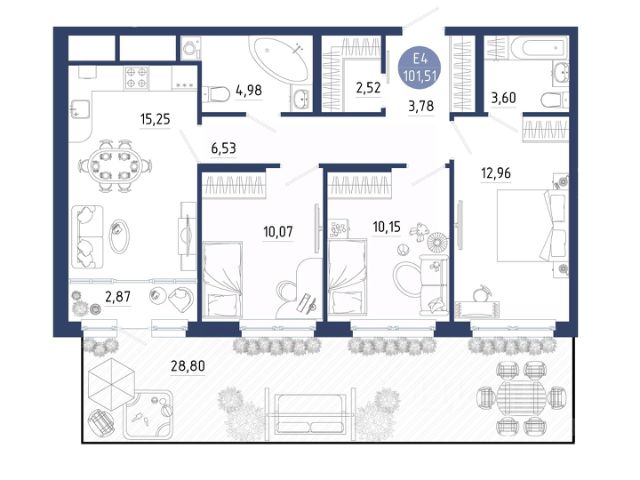 Шикарная евро-трешка в современном жилом комплексе с дизайнерским ремонтом, индивидуальной террасой и кабинетом, с 2 санузлами, мастер спальней !!!