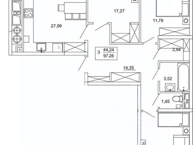 - электропроводка на медном кабеле 220 V с установкой электрического щита на лестничной площадке и распределительного щита в квартире;- штукатурка кирпичных стен, кроме стен лоджий, откосов дверных и оконных проемов, ниш прохождения стояков водопровода и канализации; стены из пазогребневых плит (ПГП) и участки монолитных конструкций не штукатурятся;- стяжка пола;- шумоизоляция пола;- система отопления и горячего водоснабжения от крышной котельной с установкой прибора учета расхода тепла;- установлены приборы (радиаторы)отопления;- установлена силовая электрическая розетка для самостоятельной установки Участником электрической плиты;- смонтированы внутриквартирные стояки холодного, горячего водоснабжения и водоотведения (канализация) с установкой приборов учета. Разводка труб водоснабжения и водоотведения (канализация) до сантехнических приборов не производится, сантехнические приборы: унитаз, ванна, мойка, раковина- не устанавливаются;- установлена электрическая розетка для подключения электрического полотенцесушителя.. Электрический полотенцесушитель не устанавливается;- оконные проемы без выхода на лоджии остеклены ПВХ-профилем с отливом без подоконников; оконные проемы с выходом на лоджии остеклены ПВХ-профилем, без отлива без подоконника; лоджии остеклены, москитные сетки не предусмотрены, места запенивания монтажной пеной и укрывания гидроизоляционным герметиком не штукатурятся;- установлена входная металлическая дверь;- установлена трубка домофона, обеспечен доступ для подключения к телевизионному вещанию, интернету и телефонной линии.