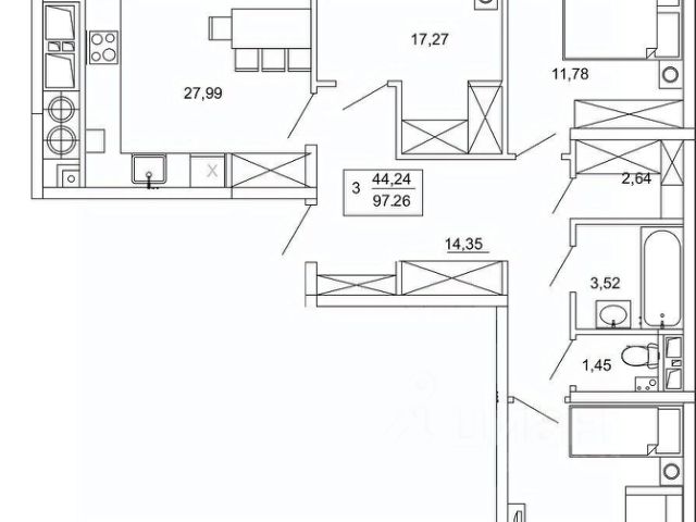 - Площадь квартиры с 2 лоджиями 113 кв.м!