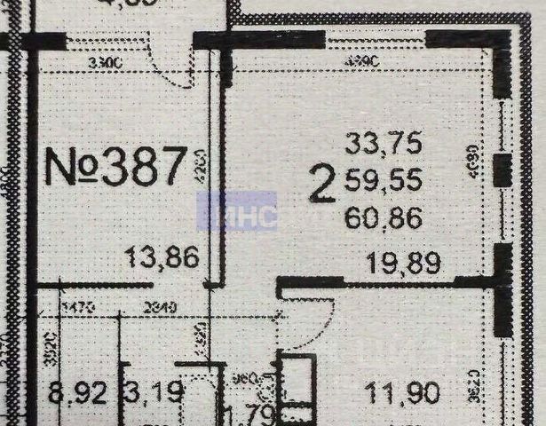 Общая площадь квартиры 60,5 кв. м, жилая площадь - 35,2 кв. м (3 комнаты прямоугольной формы 11,5; 11,8; 11,9 кв. м), кухня - 9,3 кв. м, коридор - 11,8 кв. м, санузел - 4,2 кв. м.