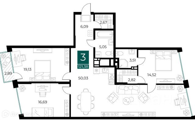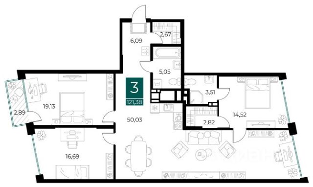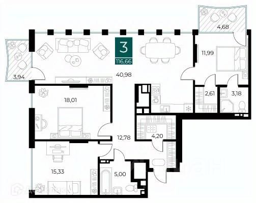 ванная комната совмещена с санузлом -5,9 кв, лоджия - 4,0 кв м,