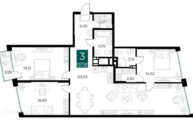 просторная утеплённая, застеклённая лоджия с выведенным светом, где приятно проводить время на свежем воздухе с прекрасным видом, площадью 17м2.