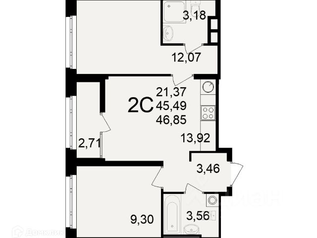 Высота потолков — 3 метра, что придаёт пространству дополнительный объём и воздушность. В квартире выполнена отделка white box, которая позволяет новому владельцу воплотить любые дизайнерские идеи.