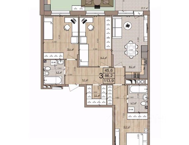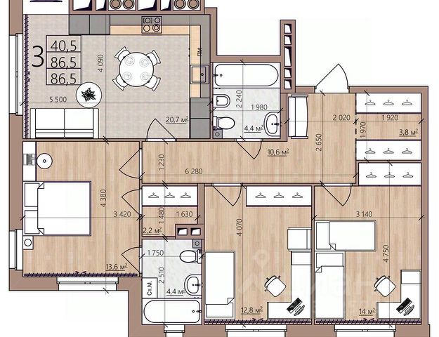 • ✅ Минимальная площадь: 86,5 м²