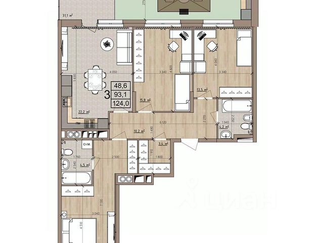 • ✅ Объект наибольшей площади: 124,6 м²