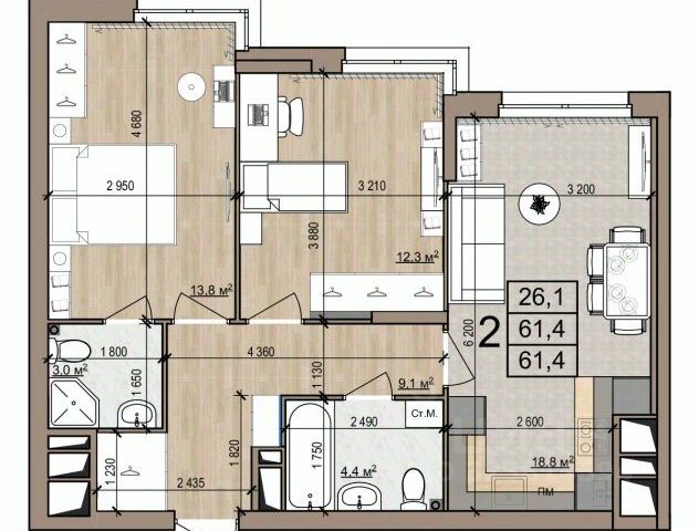 - электропроводка на негорючем медном кабеле 220 V с установкой электрического щита с электронными приборами учета на лестничной площадке и распределительного щита в квартире;- штукатурка кирпичных стен, кроме откосов дверных и оконных проемов, ниш прохождения стояков водопровода и канализации, экрана ограждений лоджий; - стяжка пола;- шумоизоляция пола;- индивидуальная (поквартирная) система отопления и горячего водоснабжения (газовый котел, газовый счетчик, элементы дымоходов, шаровые краны, разводка полиэтиленовой трубой, приборы отопления);- смонтирована система "теплый пол" в санузле и ванной комнате, в коридоре у входной двери;- смонтированы внутриквартирные стояки холодного водоснабжения (с установкой приборов учета) и водоотведения (канализация). Разводка труб водоснабжения и водоотведения (канализация) до сантехнических приборов не производится, сантехнические приборы: унитаз, ванна, мойка, раковина и полотенцесушка не устанавливаются;- вентиляционный приточный клапан (ВПК);- оконные проемы без выхода на лоджию остеклены ПВХ-профилем с отливом и подоконником; оконные проемы с выходом на лоджию остеклены ПВХ-профилем без отлива, лоджии остеклены ПВХ профилем без установки подоконника, москитные сетки не предусмотрены, места запенивания монтажной пеной и укрывания гидроизоляционным герметиком не штукатурятся; - установлена входная металлическая дверь;- установлен домофон;- обеспечен доступ для подключения к телевизионному вещанию, интернету, телефонной линии (точка подключения-щит слаботочного оборудования, расположенный на лестничной площадке). Купить 3-комнатную квартиру в микрорайоне 8-9-й Дашково-Песочни в городе Рязань.