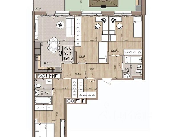 Квартира с собственной террасой! Вы покупаете не только жильё, но и собственный зеленый дворик для барбекю, детского бассейна, качелей, тренажёрного зала, летней оранжереи и так далее - на ваш вкус. Жилой комплекс "Окская стрелка" находится в микрорайоне Борки. Это единственный ЖК в Рязани, расположенный на берегу Оки! Он станет идеальным домом для тех, кто хочет жить в экологически чистом районе с особым микроклиматом, который создают река, лес и луга. Благоустройство, инфраструктура: новые дороги;набережная, песчаный пляж;прогулки на природе;школа, детский сад;игровые площадки;спортивные объекты, в том числе для занятий водными видам спорта;место для рыбалки;магазины;центральная площадь с фонтаном.Описание квартиры: отделка white box (предчистовая, можно сразу клеить обои, укладывать ламинат);готовая электрическая разводка;удобная планировка;высота потолков - 3 м;срок сдачи дома - 2-й квартал 2029 года.Квартира в ЖК "Окская стрелка" (2-я очередь) подойдёт как молодым людям, ведущим активный образ жизни, так и семейным парам с детьми, ценящим уют. Это жильё нового формата, ваше вложение в красивое будущее. Возможна рассрочка, ипотека под 6% и ниже!