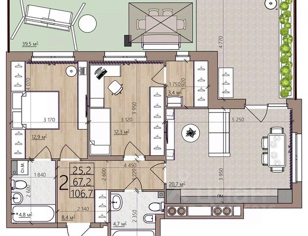 Квартира с собственной террасой! Вы покупаете не только жильё, но и собственный зеленый дворик для барбекю, детского бассейна, качелей, тренажёрного зала, летней оранжереи и так далее - на ваш вкус. Жилой комплекс "Окская стрелка" находится в микрорайоне Борки. Это единственный ЖК в Рязани, расположенный на берегу Оки! Он станет идеальным домом для тех, кто хочет жить в экологически чистом районе с особым микроклиматом, который создают река, лес и луга. Благоустройство, инфраструктура: новые дороги;набережная, песчаный пляж;прогулки на природе;школа, детский сад;игровые площадки;спортивные объекты, в том числе для занятий водными видам спорта;место для рыбалки;магазины;центральная площадь с фонтаном.Описание квартиры: отделка white box (предчистовая, можно сразу клеить обои, укладывать ламинат);готовая электрическая разводка;удобная планировка;высота потолков - 3 м;срок сдачи дома - 2-й квартал 2029 года.Квартира в ЖК "Окская стрелка" (2-я очередь) подойдёт как молодым людям, ведущим активный образ жизни, так и семейным парам с детьми, ценящим уют. Это жильё нового формата, ваше вложение в красивое будущее. Возможна рассрочка, ипотека под 6% и ниже!