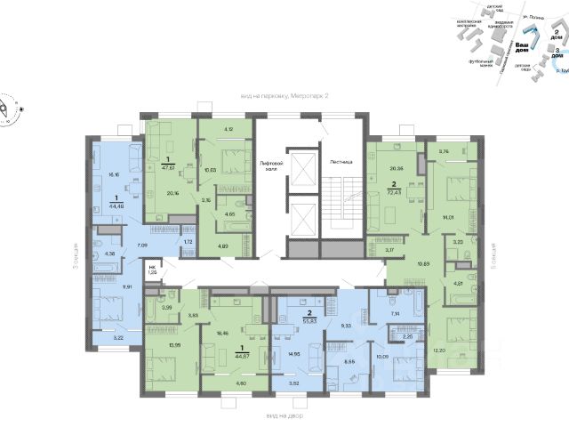 На этаже расположено всего 2 квартиры, что создает максимальную уединенность.