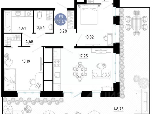 Высокие потолки. В квартире предусмотрена увеличенная высота потолков в квартирах — 3 метра, что позволяет создать правильный микроклимат и воплотить в жизнь самые разнообразные дизайнерские решения.
