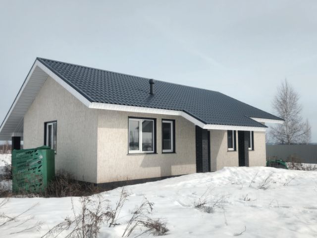 Загородный дом для постоянного проживания, технология стоительства: ленточный монолитный фундамент ниже глубины промерзания, стены газобетонные блоки плотность D500, стяжка чернового пола, деревянное потолочное перекрытие с утеплением 200 мм, крыша с покрытием из металлочерепицы Grandline, подшивка свесов софитами, окна пластиковые стеклопакеты, металлическая входная дверь, пристроенная терасса и крыльцо