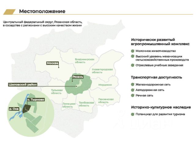 Уникальное фермерское предложение! Комплекс сельскохозяйственной недвижимости в Рязанской области, Шиловском районе, село Тырново. Производственные, складские и земельные активы с кадастровыми номерами в собственности, включая жилой дом в центре села Тырново и несколько участков под ИЖС. Идеально для масштабирования агробизнеса, логистического хаба или перепрофилирования. Всего 310 км oт Mоcквы (МКАД). Место подходит как для постоянного проживания, так и для отдыха за городом и занятием эко- фермерским хозяйством и аграрно-туристическим комплексом. Рядом находится река Ока, леса, а также местная достопримечательность - танцующий лес Продажа участка строго для дачи.