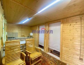 Придомовая территория выложена мраморной плиткой. Фонтан среди вековых сосен, выполненный из гранита и титана.Клумбы и скамейки, беседка и мангальная зона, веранда, гараж- все это в собственном лесу . Причудливые строения из камня, массива дуба, металла и гранита в окружении сосен, елей и можжевельника.Периметр обрамляют великолепные туи. Толщина стен дома 1 метр, крыша рулонная оцинкованная сталь толщиной 1,5 мм и из сплошной 50 мм половой доски. Сам дом имеет 2 жилых этажа+ цокольный, в котором находится сауна из осины и техническое помещение(бойлерная).