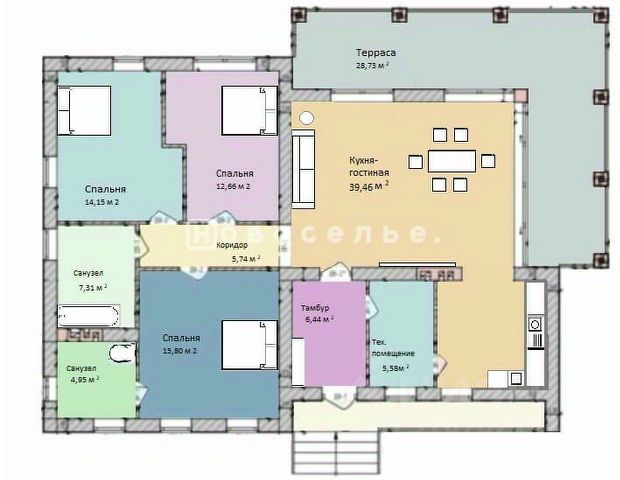 2 этаж - гостиная, две спальни, кабинет-библиотека, утепленная лоджия с шикарным видом, с/у.